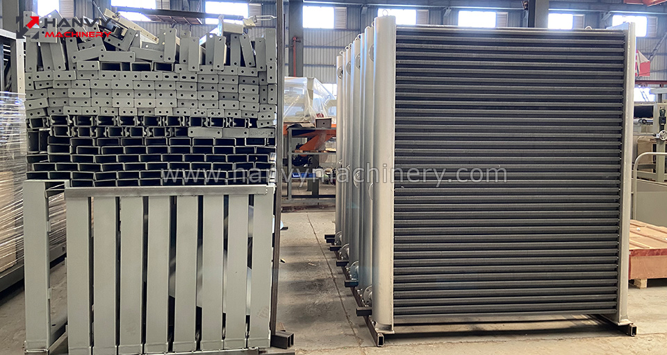 单板干燥机是将旋切后的湿单板快速干燥至目标含水率的设备,通过热力传导、对流和水分蒸发的物理过程,快速降低单板含水率,散热器是单板干燥机的“心脏”,是热能传递的核心部件,其作用直接影响干燥效率、能耗及单板质量。